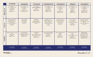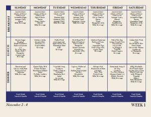 Elegant Senior Living Weekly Meal Schedule Letter Size