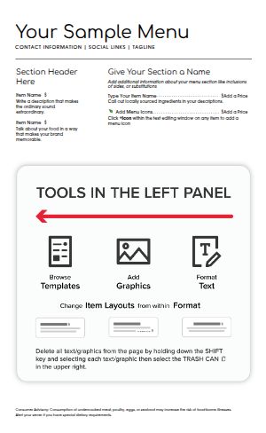 Our collection of simple menu templates are designed for busy restaurants that need to update their menus often. Use our online menu designer to make daily or weekly updates, and print any time.